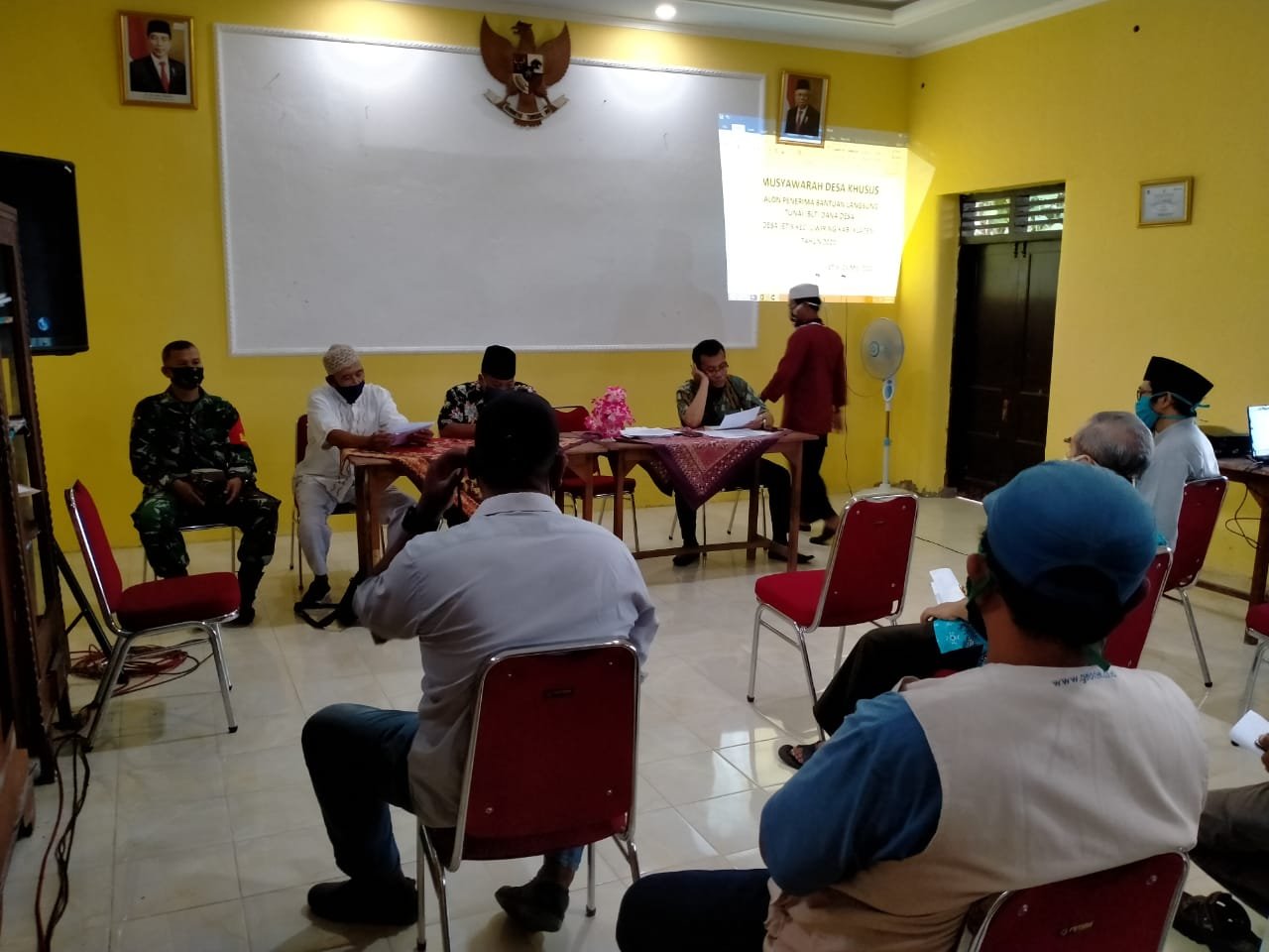 Klaten | Jelang penyaluran BLT Dana Desa, Serma Sutarman Babinsa Desa Jetis Koramil 21/Juwiring Kodim 0723/Klaten, menghadiri acara Musyawarah Desa Khusus penetapan penerima Bantuan Langsung Tunai (BLT) Dana Desa, desa Jetis tahun 2020 untuk warga terdampak Covid-19, Selasa (05/05/2020).