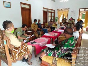 Klaten | Pemerintah Kecamatan Juwiring menggelar rapat Koordinasi perihal mekanisme pendistribusian bantuan sosial dari Kementerian Sosial untuk masyarakat miskin akibat wabah Corona Virus Disease 19 (Covid-19) di wilayah Kecamatan Juwiring, Kabupaten Klaten.