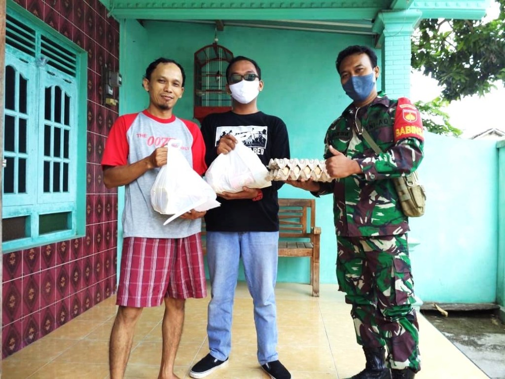 Klaten | Babinsa Desa Bulurejo Koramil 21/Juwiring Kodim 0723/Klaten Koptu Kelik ikut mendampingi penyaluran Bantuan Sosial dari Pemerintah Propinsi Jateng kepada warga kurang mampu yang terdampak pandemi covid-19, di wilayah Desa Bulurejo, Kecamatan Juwiring, Kab. Klaten. Jumat (19/06/20).
