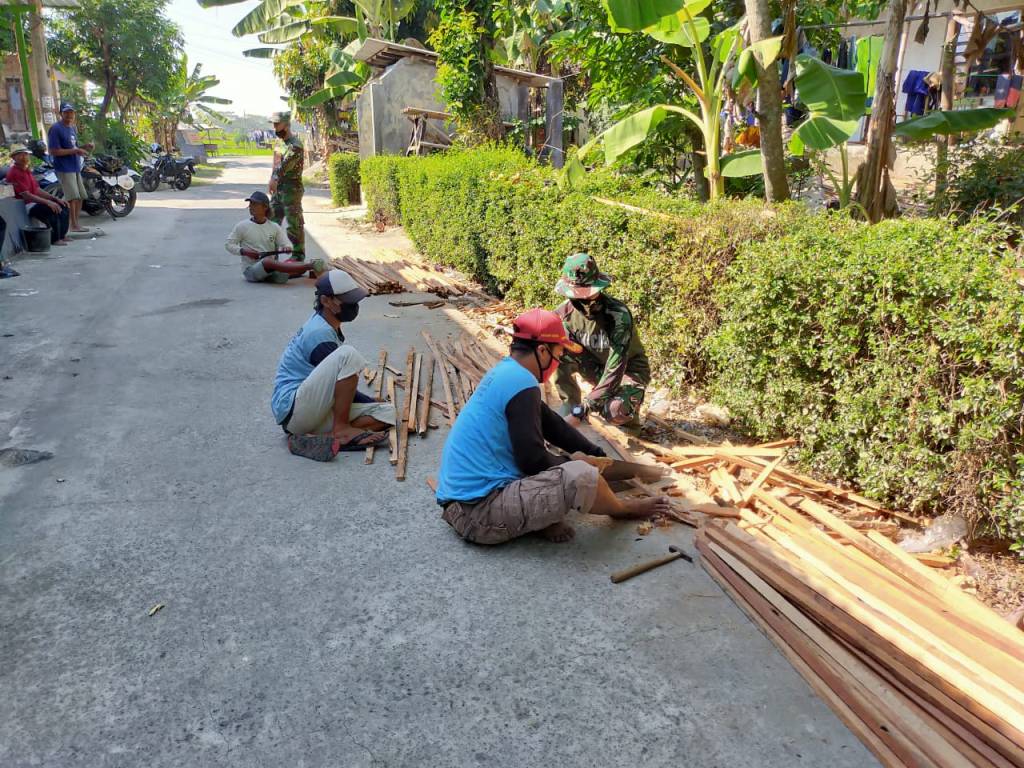 Usai melepas lelah mereka pun melanjutkan kegiatannya. Rumah Legimin menjadi salah satu dari sepuluh Rumah Tidak Layak Huni (RTLH) yang direnovasi dalam Karya Bakti Mandiri Klaten Bersinar Tahap II Tahun Anggaran 2020 Kodim 0723/Klaten di Desa sawahan tersebut.