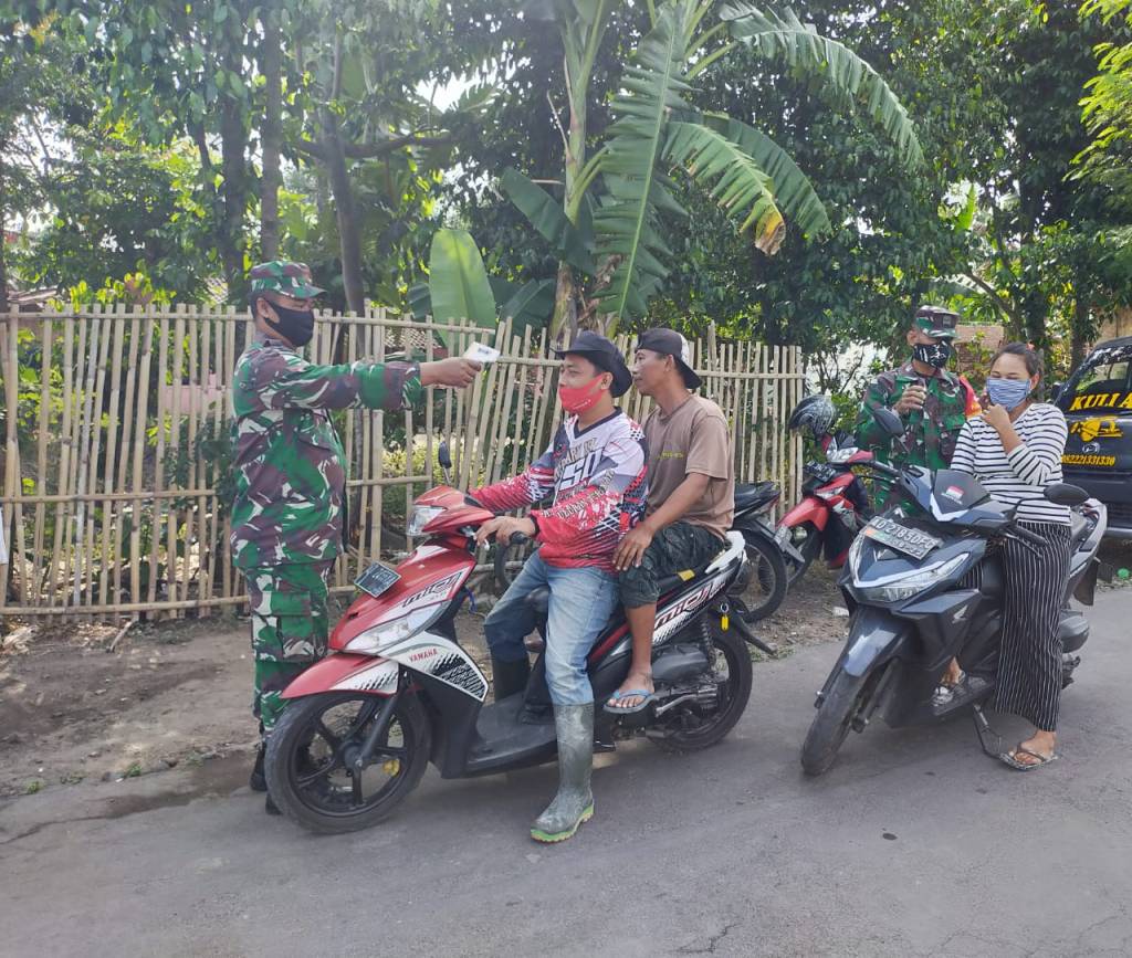 Klaten | Koramil 21 Juwiring bersama Polsek Juwiring dan Kasi Trantib Kecamatan Juwiring melakukan Kegiatan Sosialisasi Penegakan Penerapan New Normal sekaligus Sosialisasi Penindakan yang akan dilakukan Aparat Penegak Hukum bagi pelanggar protokol kesehatan, Senin (13/07/2020).