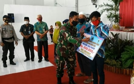 Klaten | Babinsa Desa Kenaiban Koramil 21/Juwiring Kodim 0723/Klaten Serka Sugimin melaksanakan pengamanan kegiatan pembagian BLT (Bantuan Langsung Tunai) Tahap lll dari Dana Desa Kenaiban TA. 2020 yang bertempat di Kantor Desa Kenaiban, Kecamatan Juwiring, Kabupaten Klaten, Kamis (23/07/2020 ).