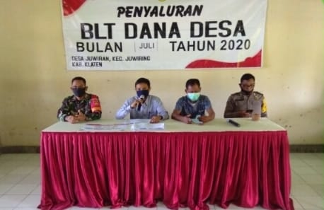 “BLT (Bantuan Langsung Tunai) tersebut diberikan berupa uang tunai senilai Rp. 600.000,- per KK ini diserahkan langsung oleh Kaur Keuangan Desa Juwiran,” tambahnya.