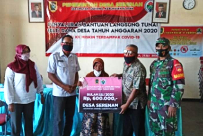 “BLT (Bantuan Langsung Tunai) tersebut diberikan berupa uang tunai senilai Rp. 600.000,- per KK ini diserahkan langsung oleh Kaur Keuangan Desa Serenan,” tambahnya.
