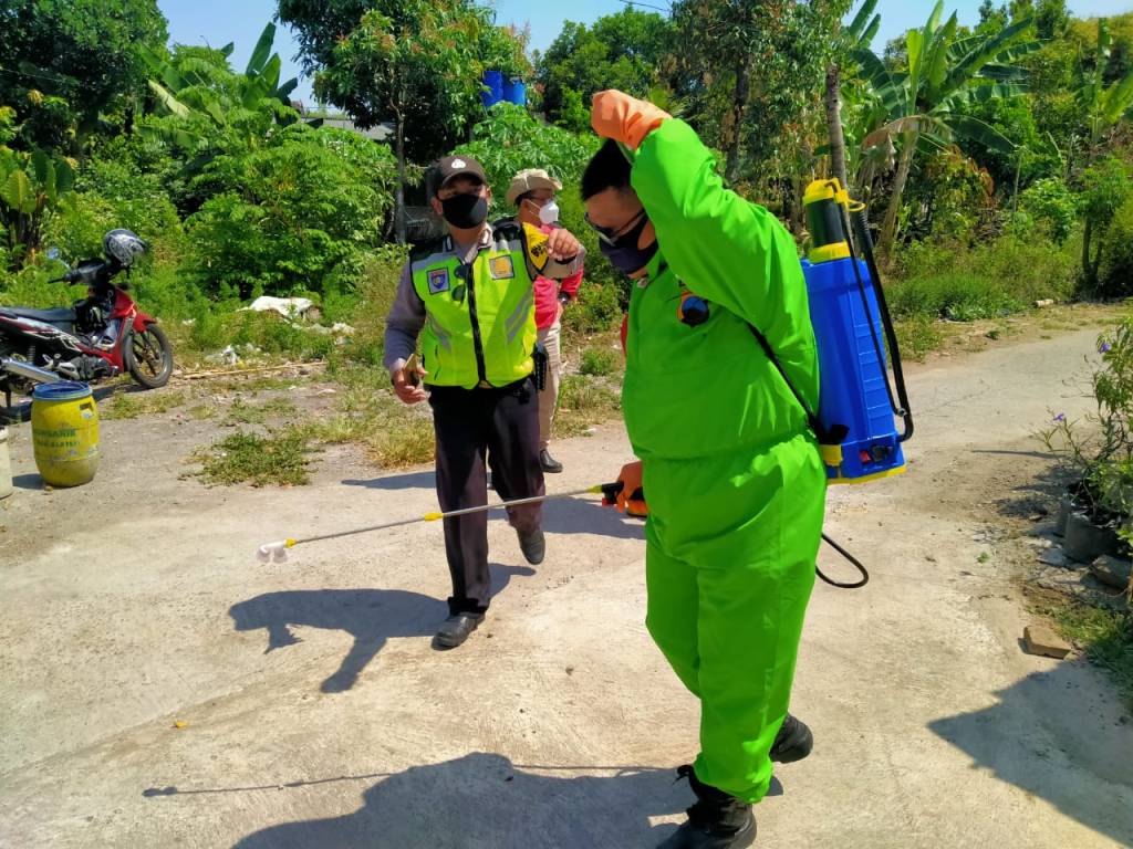 Klaten | Babinsa Desa Pundungan Koramil 21/Juwiring Kodim 0723/Klaten Serka Suliadi bersama Polsek Juwiring, Relawan Kec. Juwiring dan Komponen Masyarakat Desa Pundungan melaksanakan penyemprotan cairan disinfektan di wilayah Desa Pundungan Kecamatan Juwiring untuk mencegah penularan virus corona (covid-19), Senin (31/8/2020).