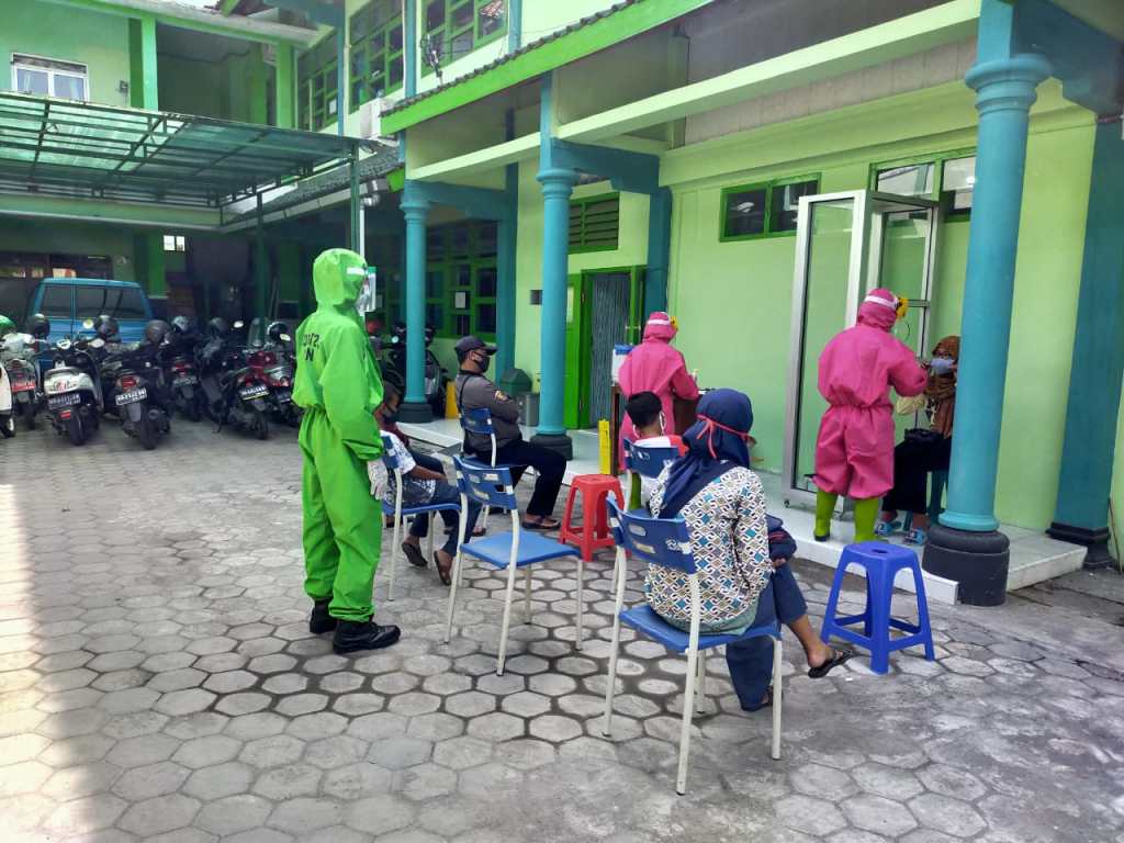 Hadir dalam kegiatan Test Swab, Kepala Puskesmas Juwiring dr. Iin Delfi Indraswati, M. Kes beserta Staf dan Tenaga Medis, Perangkat desa Bolopleret, Bidan Desa Bolopleret, Babinsa dan Bhabinkamtibmas Bolopleret.