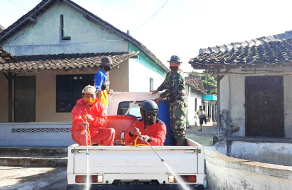 Koptu Sayoga Babinsa Desa Jaten mengatakan, Kepala Desa Jaten beserta Komponen masyarakat Desa Jaten menggandeng Koramil 21/Juwiring dan Relawan Kec. Juwiring untuk mensterilkan wilayah Desa Jaten dari dampak virus corona.