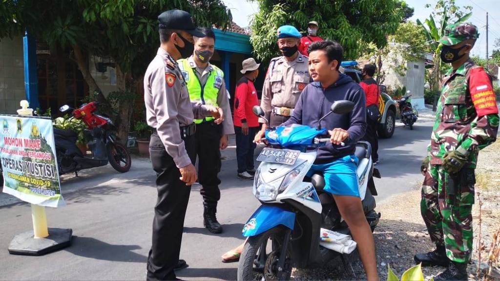Klaten | Koramil 21 Juwiring bersama Polsek Juwiring dan Relawan penanggulangan Covid-19 Kecamatan Juwiring menggelar Operasi Penegakan Protokol Kesehatan dalam rangka mencegah penyebaran Covid-19 di wilayah Desa Carikan, Kecamatan Juwiring Kab. Klaten, Selasa (22/09/2020).