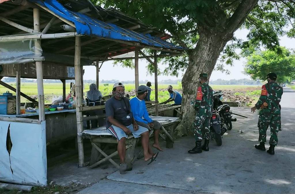 Seperti yang telah dilaksanakan Serka Wahyono beserta tiga Anggota Koramil 21/Juwiring yang ditugaskan bersama perangkat Desa Bulurejo Kecamatan Juwiring melaksanakan sosialisasi di tempat-tempat keramaian Desa tersebut dalam rangka pencegahan peredaran Covid-19 atau virus Corona, Rabu (21/10/20)
