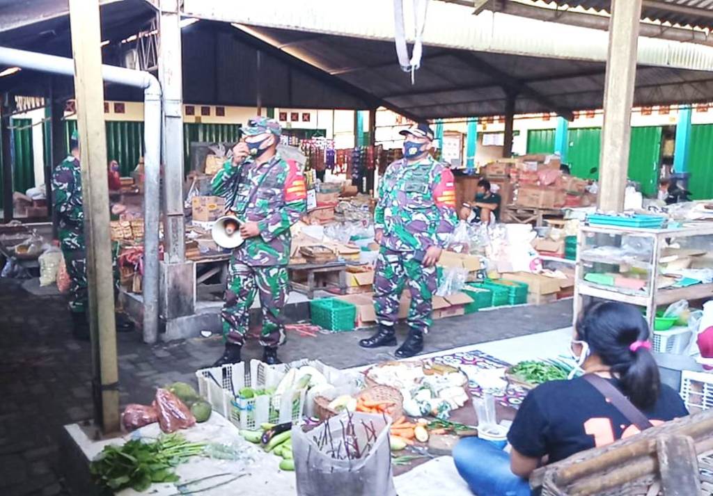 Seperti yang telah dilaksanakan Serka M. Asfari beserta tiga orang Anggota Babinsa Koramil 21/Juwiring yang ditugaskan bersama perangkat Desa Bulurejo Kecamatan Juwiring melaksanakan sosialisasi Protokol Kesehatan di Pasar Juwiring, Desa Bulurejo, Kec. Juwiring dalam rangka pencegahan penyebaran Covid-19, Selasa (17/11/2020)