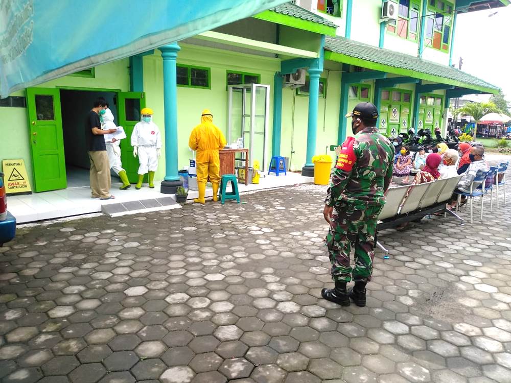 Klaten | Memaksimalkan upaya pencegahan Covid-19, Babinsa Koramil 21/Juwiring Kodim 0723/Klaten, melaksanakan kegiatan pendampingan Tim Kesehatan dari Puskesmas Juwiring dan Tim Gugus Tugas Covid-19 melaksanakan Swab Test terhadap warga di wilayah Kec. Juwiring. Kegiatan tersebut dilaksanakan di Puskesmas Juwiring, Kab. Klaten, Senin (23/11/20).