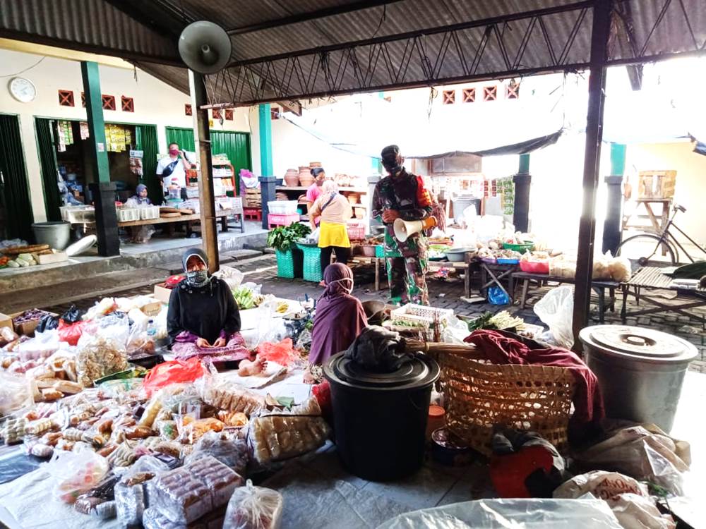 Seperti yang telah dilaksanakan Serda Drajad Nurhadi beserta dua orang Anggota Babinsa Koramil 21/Juwiring yang ditugaskan bersama Perangkat Desa dan Gugus Tugas Desa Bulurejo Kecamatan Juwiring melaksanakan sosialisasi Protokol Kesehatan di Pasar Juwiring, Desa Bulurejo, Kec. Juwiring dalam rangka pencegahan penyebaran Covid-19, Rabu (25/11/2020)