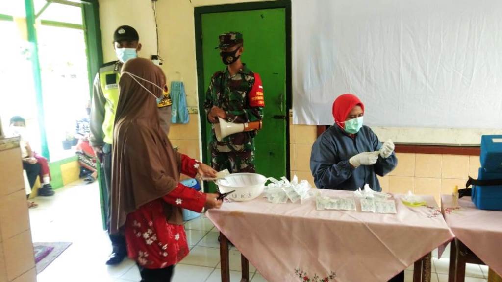 Klaten | Dalam Rangka Bulan Imunisasi Anak Sekolah ( BIAS) petugas Puskesmas Juwiring dengan didampingi Babinsa Desa Bolopleret Koramil 21/Juwiring Kodim 0723/Klaten Serda Drajad Nurhadi melaksanakan kegiatan penyuntikan Vaksin kepada Siswa-siswi SDN 2 Bolopleret, Desa Bolopleret, Kecamatan Juwiring, Kabupaten Klaten, Selasa (1/12/2020)
