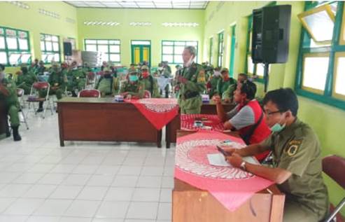 Juwiring – Danramil 21/Juwiring yang diwakili Bati Tuud Pelda Suyono menghadiri acara pembekalan bagi petugas Perlindungan Masyarakat (Linmas) yang diselenggarakan di Kantor Kecamatan Juwiring, Kab. Klaten, Jum’at (4/12/2020).