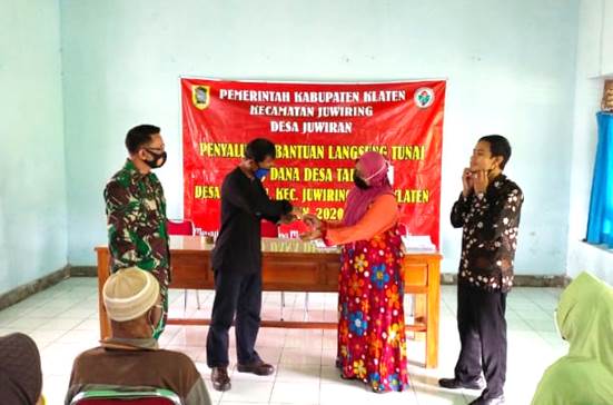 “BLT (Bantuan Langsung Tunai) tersebut diberikan berupa uang tunai senilai Rp. 300.000,- per KK ini diserahkan langsung oleh Kaur Keuangan Desa Juwiran,” tambahnya.