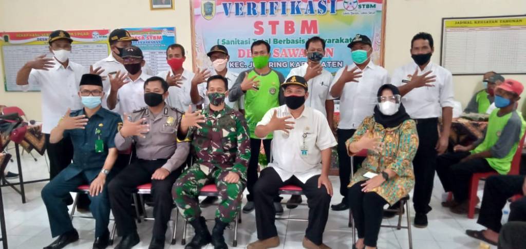 Klaten | Demi terwujudnya wilayah Desa yang bersih, sehat, lestari dan indah sesuai dengan standar kesehatan, Danramil 21/Juwiring Kapten Cba Maliana Heri Sugiarto menghadiri Verifikasi Sanitasi Total Berbasis Masyarakat (STBM) bertempat di Aula Kantor Desa Sawahan, Kecamatan Juwiring, Kabupaten Klaten, Rabu (16/10/2020).