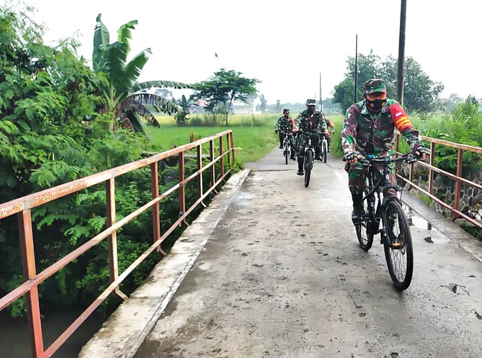 Klaten | Anggota Koramil 21/Juwiring Kodim 0723/Klaten melaksanakan olah raga sepeda santai menyusuri perkampungan di wilayah Kecamatan Juwiring, Kabupaten Klaten, kamis (21/01/2021).