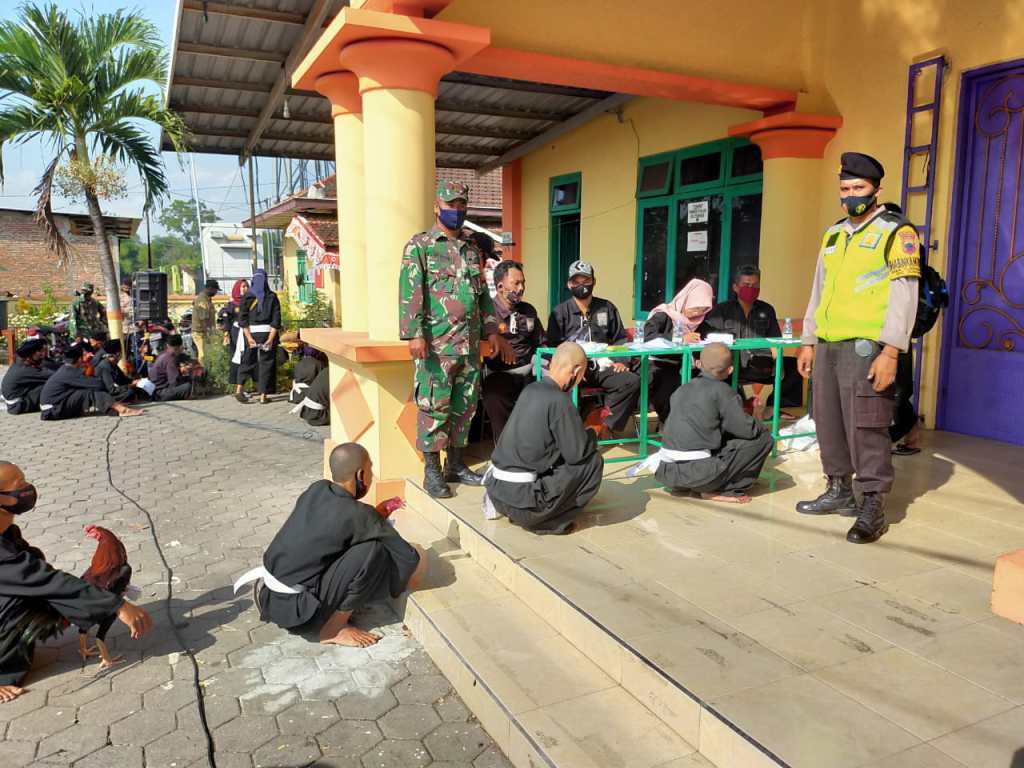 Klaten – Danramil 21 Juwiring Kapten Cba Maliana Heri Sugiarto menghadiri acara prosesi pengesahan warga baru Persaudaraan Setia Hati Terate (PSHT) Cabang Klaten Tahun 2020, yang dilaksanakan di Lapangan Desa Bulurejo, Kecamatan Juwiring, Kab. Klaten, Kamis Malam (10/09/2020).