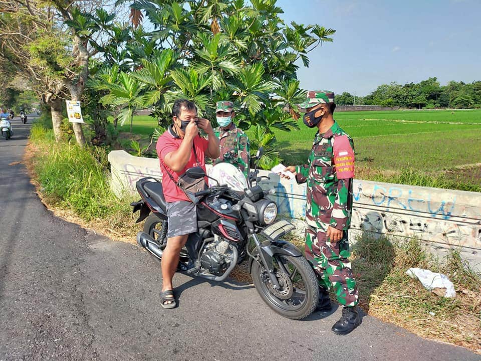 Klaten | Babinsa Desa Gondangsari Koramil 21/Juwiring Kodim 0723/Klaten Serka Wahyono melaksanakan pengamanan kegiatan pembagian BLT (Bantuan Langsung Tunai) Tahap lll dari Dana Desa Gondangsari TA. 2020 yang bertempat di Kantor Desa Gondangsari, Kecamatan Juwiring, Kabupaten Klaten, Jumat (24/07/2020 ).