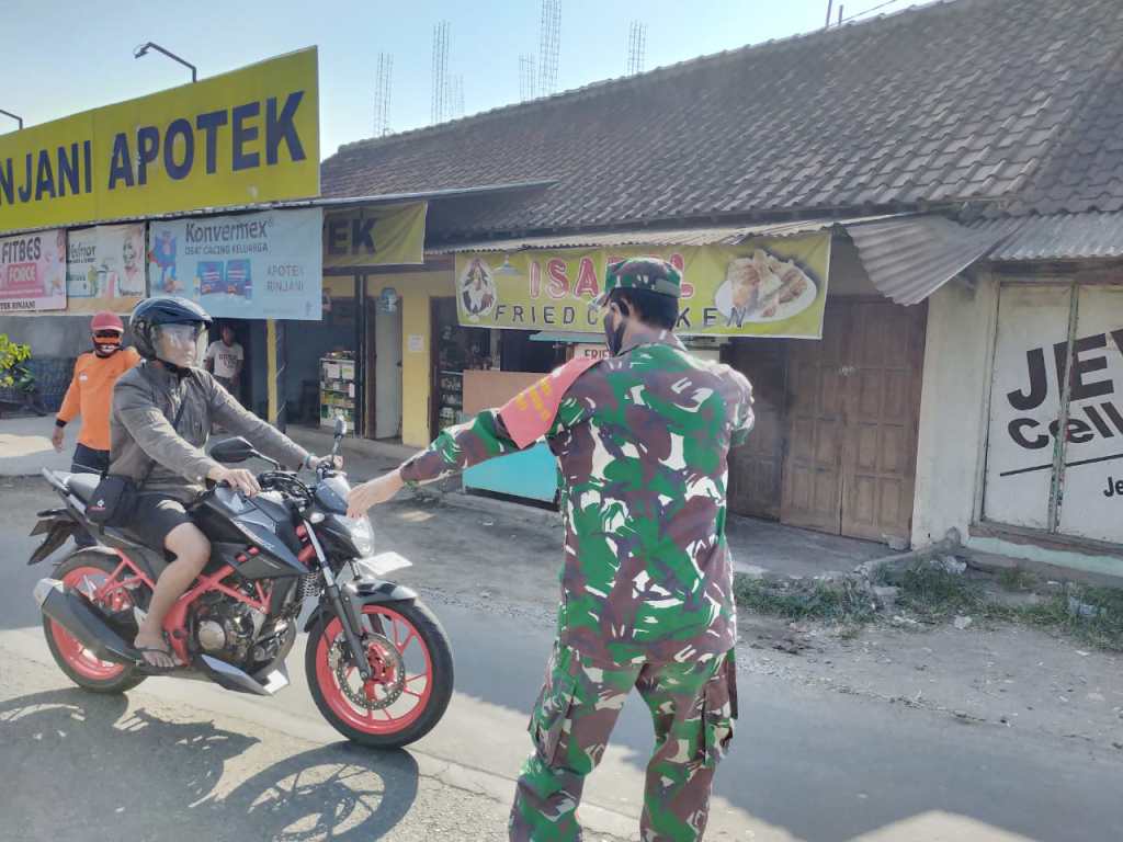 Klaten| Koramil 21 Juwiring bersama Polsek Juwiring dan Kasi Trantib Kecamatan Juwiring serta Relawan Juwiring melakukan Kegiatan Sosialisasi Penegakan Penerapan New Normal sekaligus melaksanakan Penindakan bagi pelanggar protokol kesehatan di wilayah Kecamatan Juwiring Kab. Klaten, Minggu (19/07/2020).