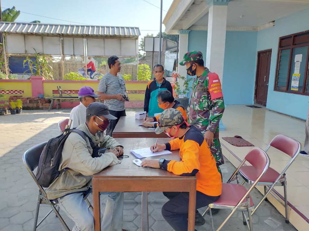 Klaten| Koramil 21 Juwiring bersama Polsek Juwiring dan Kasi Trantib Kecamatan Juwiring serta Relawan Juwiring melakukan Kegiatan Sosialisasi Penegakan Penerapan New Normal sekaligus melaksanakan Penindakan bagi pelanggar protokol kesehatan di wilayah Kecamatan Juwiring Kab. Klaten, Jum’at (17/07/2020).